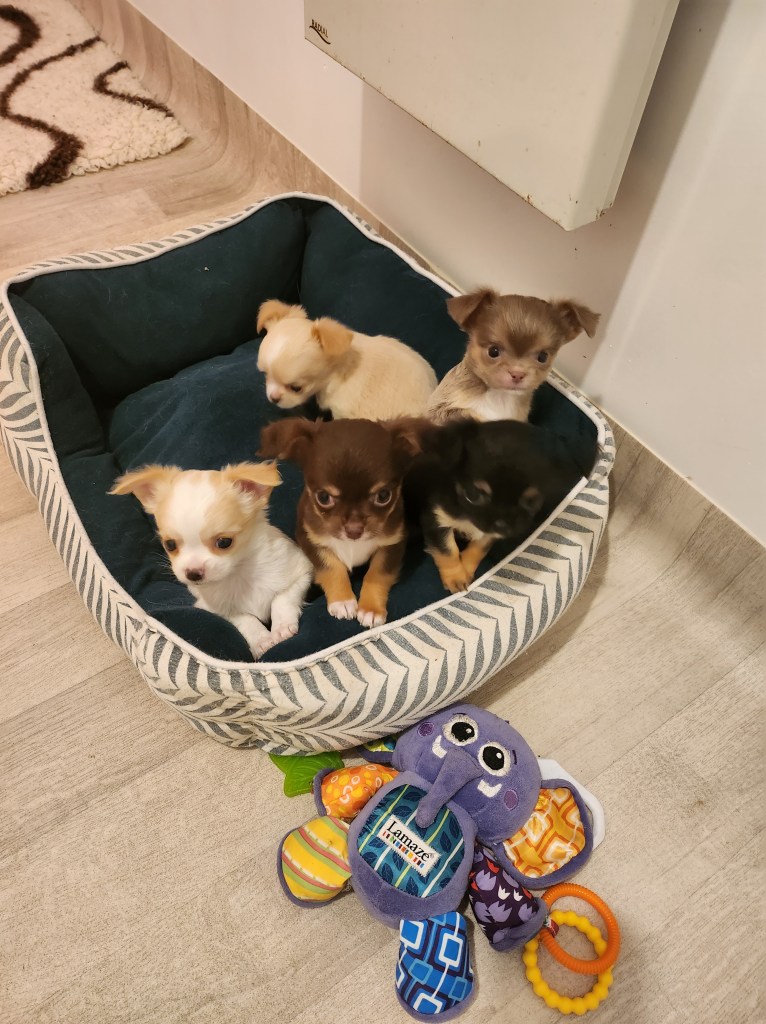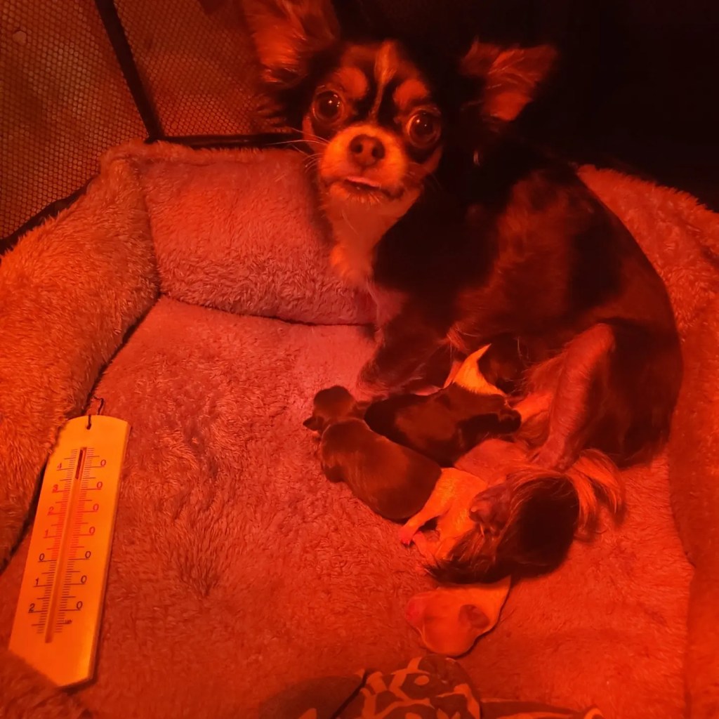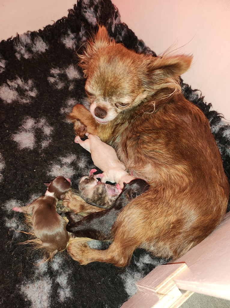 30min plus tard il m’appelle et me demande de revenir, tous les chiots sont nés sans un mot de plus…le stress.