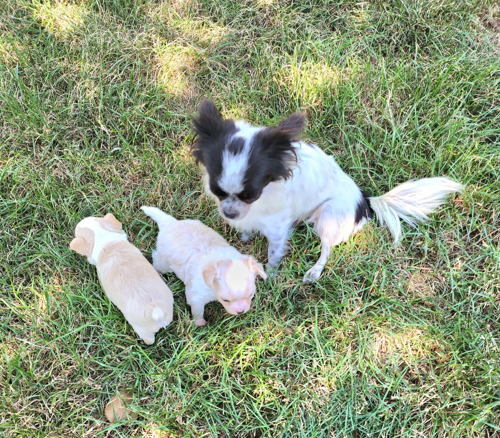Je suis tellement heureuse!!! Ma Sia est une super maman, les deux chiots grossissent très bien.